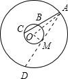 解:设圆心为O点,做AD与小圆相切,切点为点M,与大圆交于点D,连接OM,