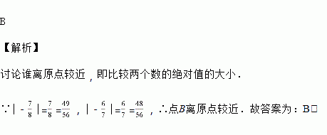 数轴上,如果点A表示–,点B表示–,那么离原点较近的点是__________.(填A或B)