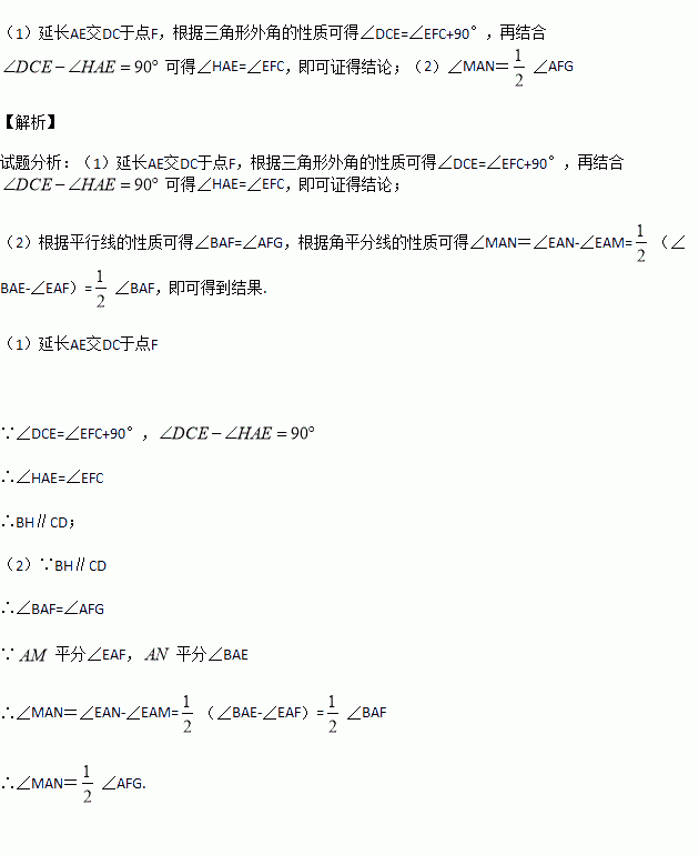 如图,点E在直线BH、DC之间,点A为BH上一点,且AE⊥CE,.