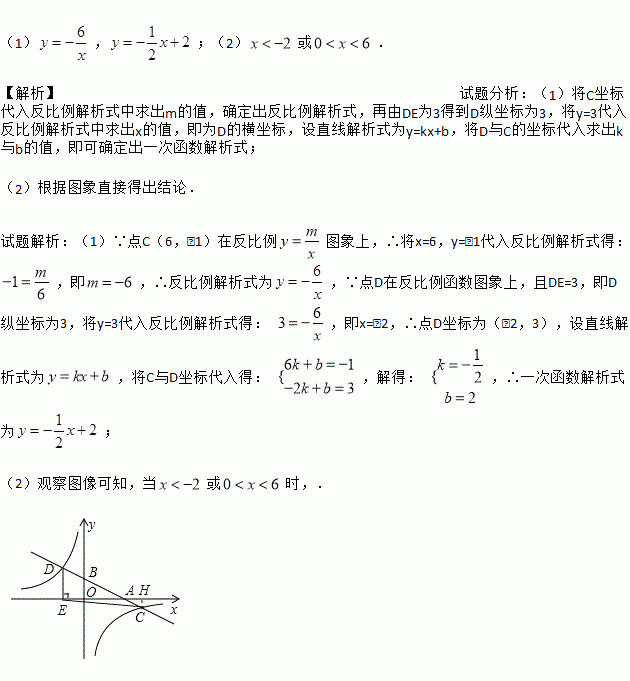 的图象交于C、D两点,DE⊥x轴于点E,已知点C的坐标是(6,-1),DE=3.