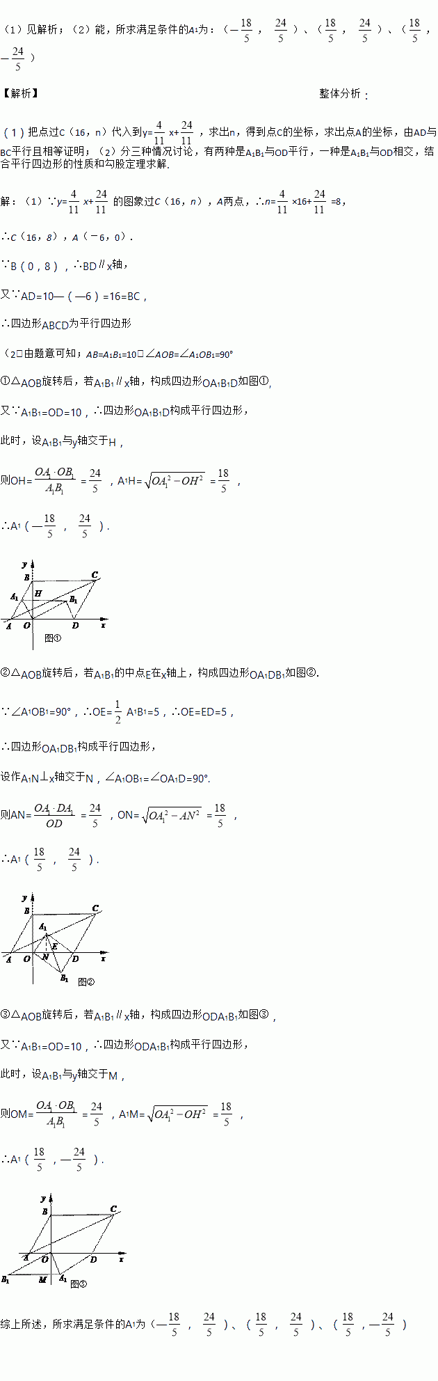 (2)将△AOB绕点O顺时针旋转,旋转得△A1OB1,问:能否使以点O、A1、D、B1为顶点的四边形是平行四边形?若能,求点A1的坐标;若不能,请说明理由;