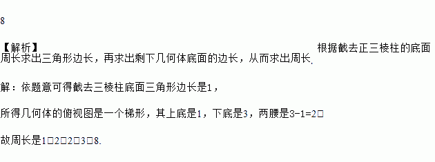 如图,正三棱柱的底面周长为9,截去一个底面周长为3的正三棱柱,求所得几何体的俯视图的周长.