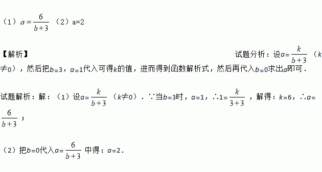 若a是b+3的反比例函数,且当b=3时a=1,