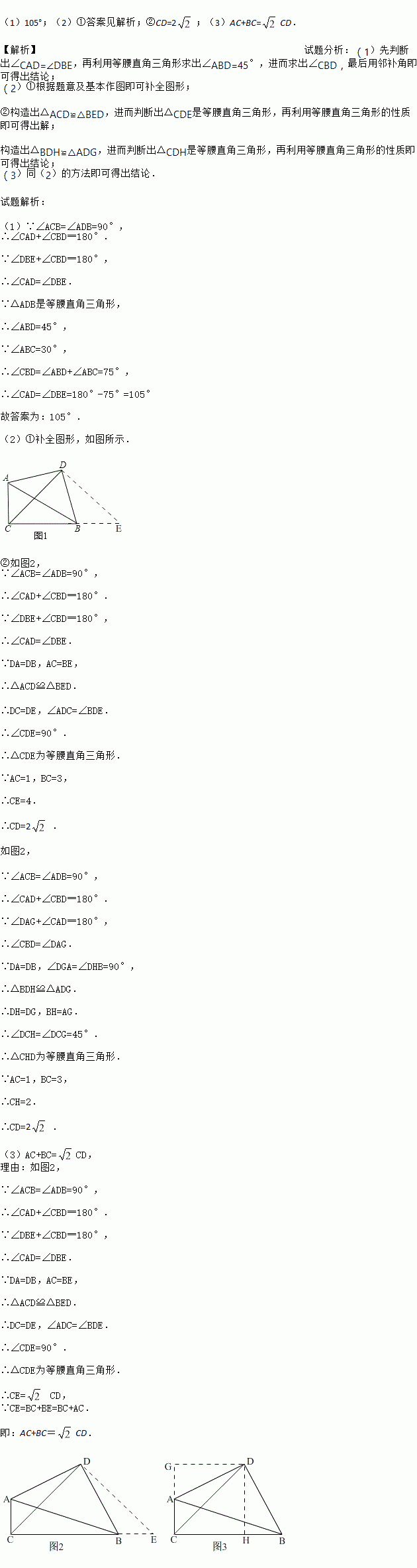 (3)用等式表示线段AC,BC,CD之间的数量关系(直接写出即可).