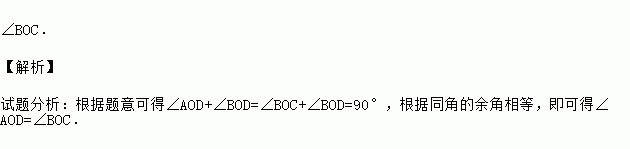 如图,将一副三角尺叠放在一起,使直角顶点重合于点O,绕点O任意转动其中一个三角尺,则与∠AOD始终相等的角是 .