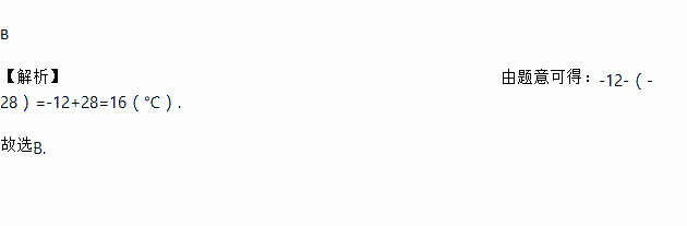 哈市某天的最低气温为-28,最高气温为-12,则这一天的最高气温与最低气温的差为( )