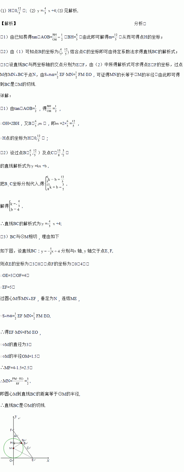,)是以OA为直径的⊙M上的一点,且tan∠AOB=![]()