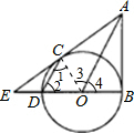 分析:(1)利用切线的性质与判定得出∠3=∠4,进而得出△ABO≌△ACO,进而利用切线的判定得出即可;