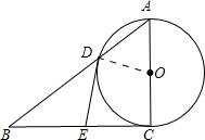 在Rt△ABC中,∠ACB=90°,以AC为直径的⊙O与AB边交于点D,过点D作⊙O的切线,交BC于点E.