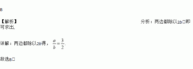 已知2a=3b,则a:b的值是( )
