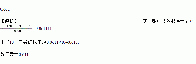 为了帮助残疾人,某地举办“即开型"福利彩票销售活动,规定每10万张为一组,其中有10名一等奖,100名二等奖.1 000名三等奖,5 000名爱心奖,小明买了10张彩票,则他中奖的概率为__.