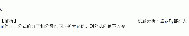 若将分式中的字母与的值分别扩大为原来的10倍,则这个分式的值( )