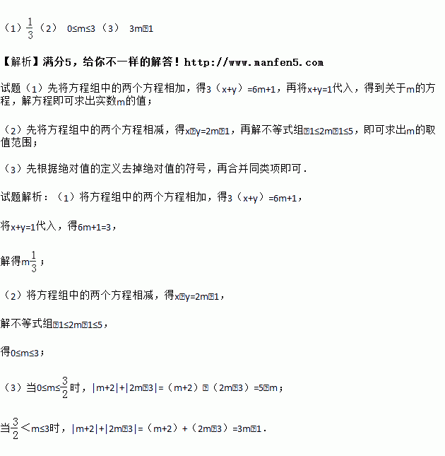 已知关于x、y的方程组(实数m是常数).