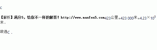 我国“神七”在2008年9月26日顺利升空,宇航员在27日下午4点30分在距离地球表面423公里的太空中完成了太空行走,这是我国航天事业的又一历史性时刻.将423公里用科学记数法表示应为( )米.