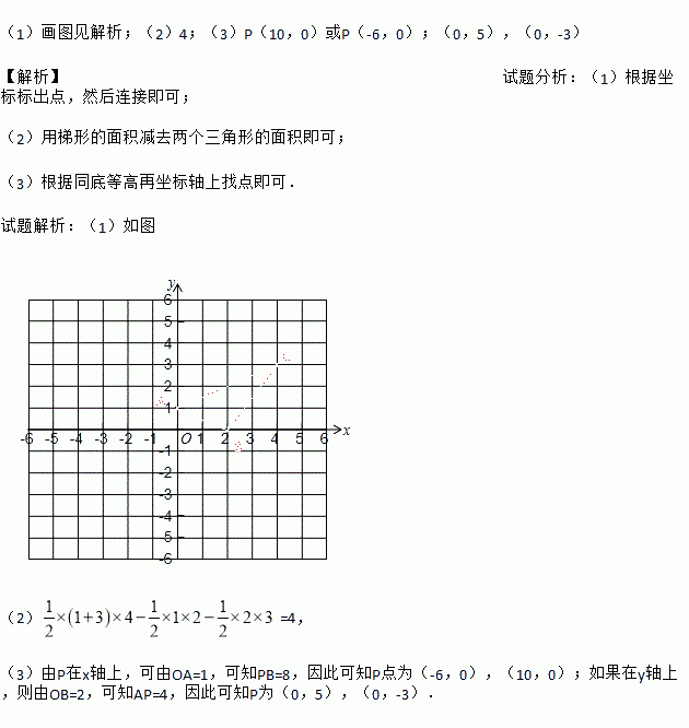 (3)设点P在坐标轴上,且△ABP与△ABC的面积相等,求点P的坐标.