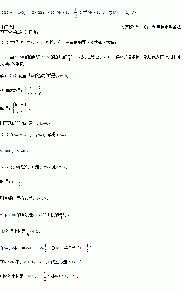 如图,在平面直角坐标系中,过点B(6,0)的直线AB与直线OA相交于点A(4,2),动点M在线段OA和射线AC上运动.