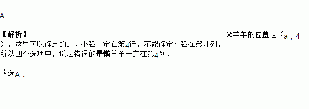 如果在教室内的位置用某列某行来表示,懒羊羊在教室里的座位是(a,4),那么下面说法错误的是( )
