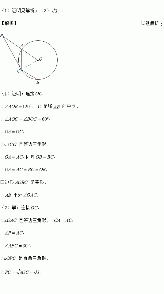 (2014•湖北黄石)如图,A、B是圆O上的两点,∠AOB=120°,C是AB弧的中点.