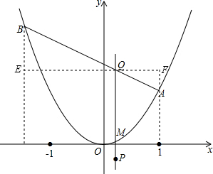 分析:(1)将点A(1,1)代入抛物线y=ax2,可求抛物线的解析式,根据点B在抛物线上,则n=m2=4,可得B(-2,4),过Q点作x轴的平行线EF,过点A、B作x轴垂线分别交EF于F、E点,设点Q (x1,y1),E (-2,y1),F(1,y1),根据相似三角形的判定和性质可得点Q的坐标;
