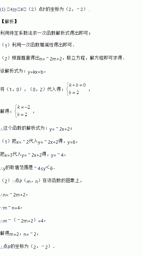 (2)已知点P(m,n)在该函数的图象上,且m﹣n=4,求点P的坐标.