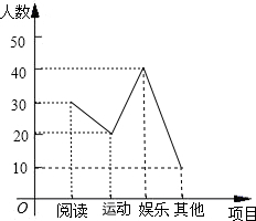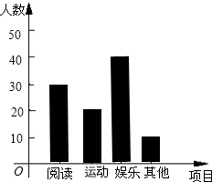 (3)娱乐人数:100×40%=40(人),其他人数:100-30-20-40=10(人).