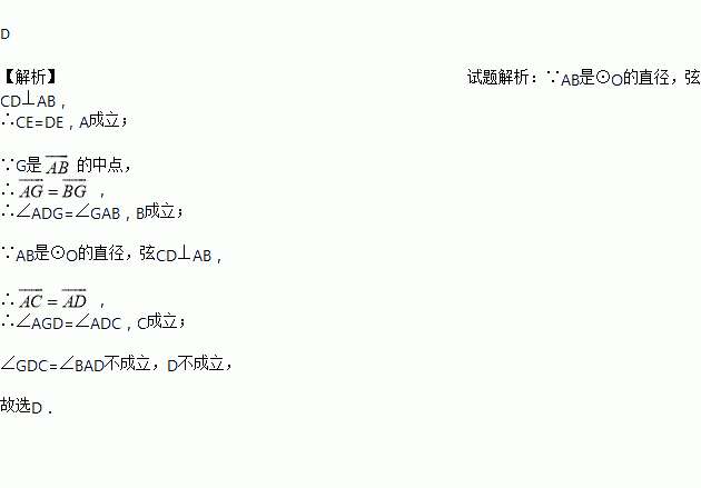 如图,AB是⊙O的直径,弦CD⊥AB于点E,G是弧AB的中点,连结AD,AG,GD. 则下列结论错误的是( )