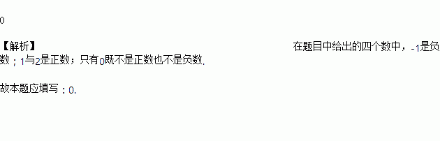 在-1,0,1,2这四个数中,既不是正数也不是负数的是_______.