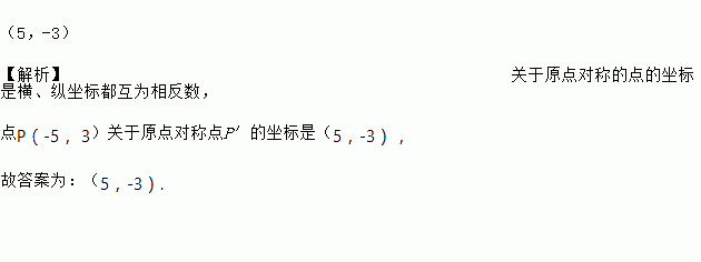 在平面直角坐标系中,点P(-5,3)关于原点对称点P′的坐标是_______.