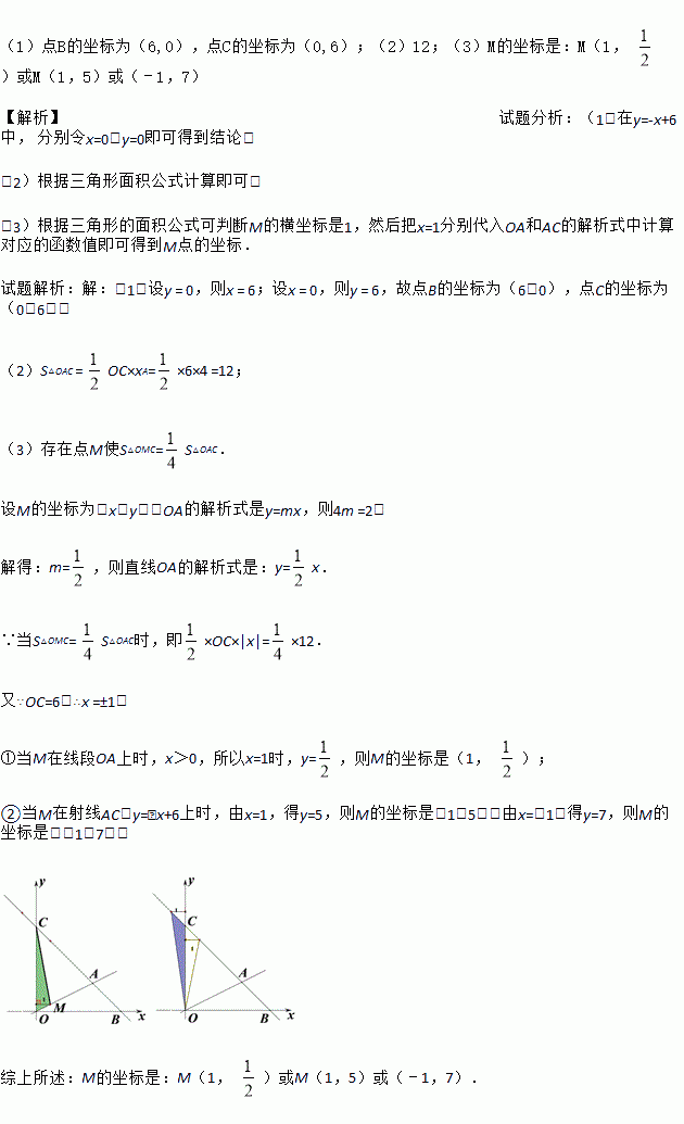 与x和y轴分别交于点B和点C,与直线OA相交于点A(4,2),动点M在线段OA和射线AC上运动.