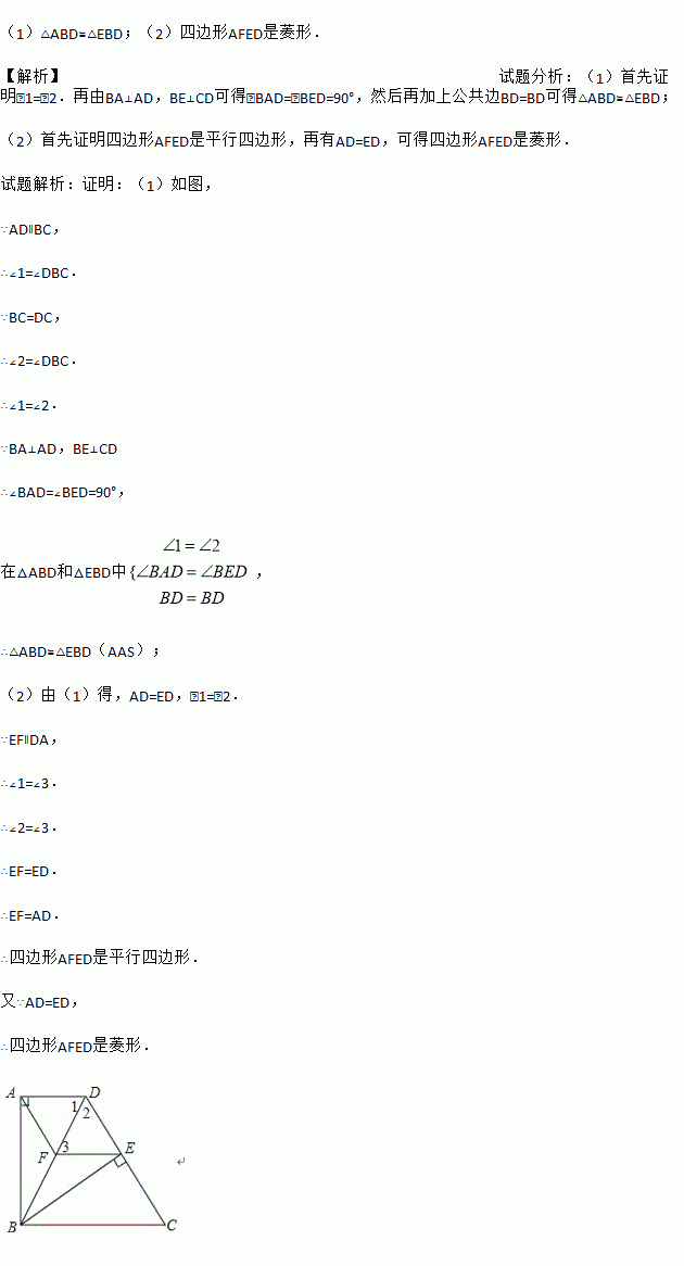 (2)过点E作EF∥DA,交BD于点F,连接AF.求证:四边形AFED是菱形.