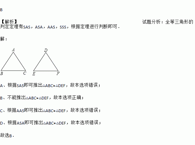 A. BC=EF B. AB=DE C. ∠A=∠D D. ∠B=∠E