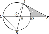 (2)先判断△OBC为等腰直角三角形得到OB=$\frac{\sqrt{2}}{2}$BC=$\frac{\sqrt{2}}{2}$,再利用圆周角定理得到∠AOC=2∠ABC=120°,则∠AOF=180°-∠AOC=60°,接着根据正切定义计算AF=$\frac{\sqrt{6}}{2}$,然后根据三角形面积公式和扇形面积公式,利用S阴影部分=S△OAF-S扇形AOD进行计算.