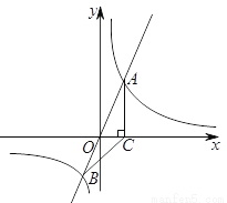 如图,在平面直角坐标系中,正比例函数与反比例函数的图像交于、两点,点的横坐标为,轴于点,连接.