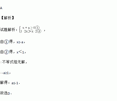A. a≥﹣1 B. a<﹣1 C. a≤1 D. a≤﹣1