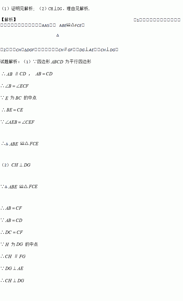 (2)过点D作DG⊥AE于点G,H为DG的中点.判断CH与DG的位置关系,并说明理由.