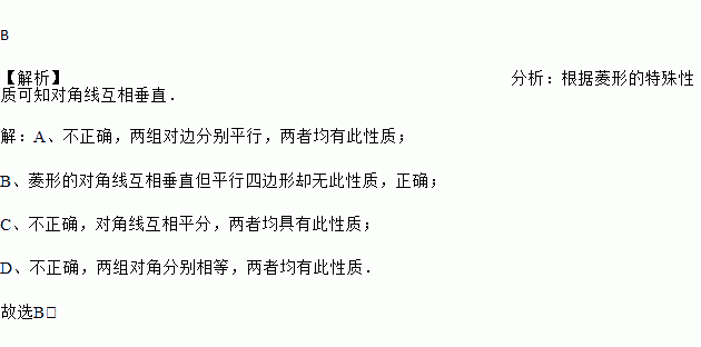 菱形具有而平行四边形不一定具有的性质是 ( )