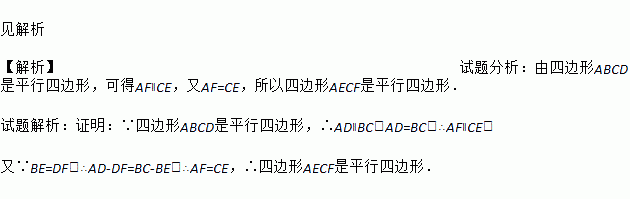 如图,在□ABCD中,点E在边BC上,点F在边AD上,且BE=DF,连结AE、CF求证:四边形AECF是平行四边形.