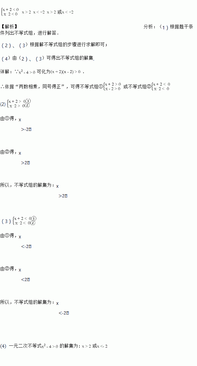 (1)依据“两数相乘,同号得正”,可得不等式组①