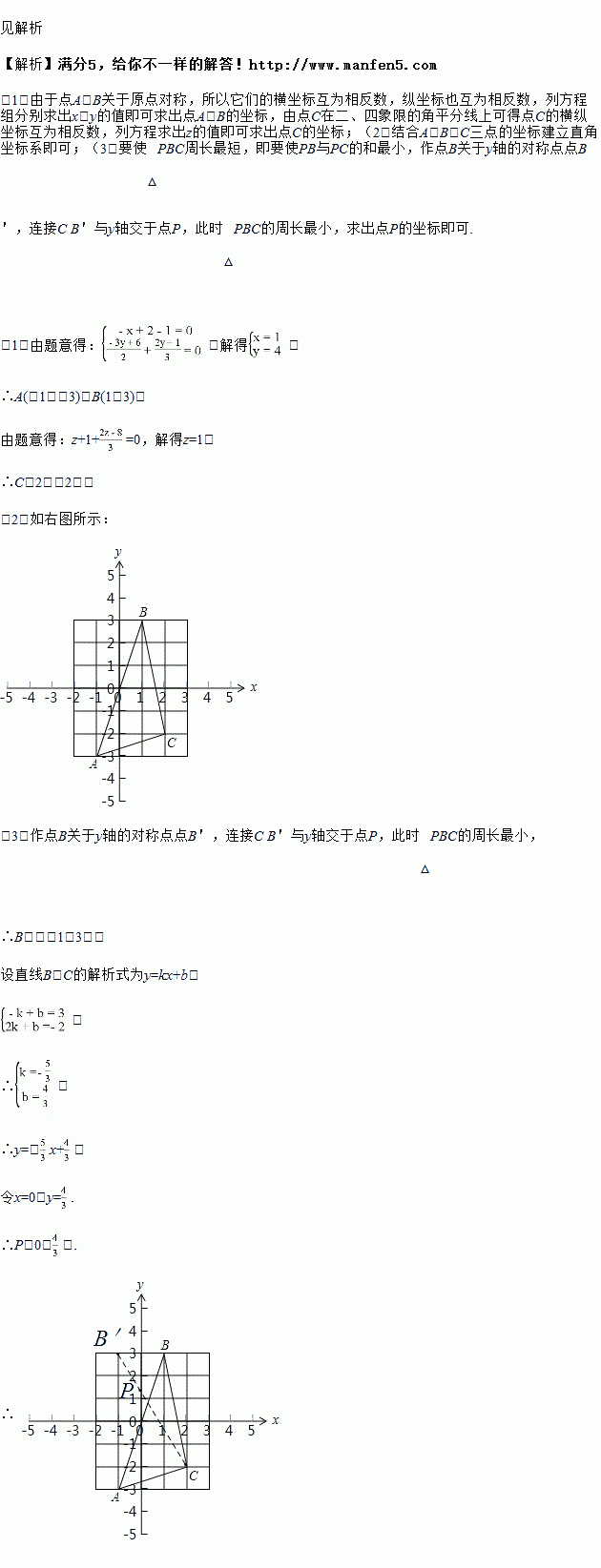 ),已知点A,B关于原点对称,点C在二,四象限平分线上.