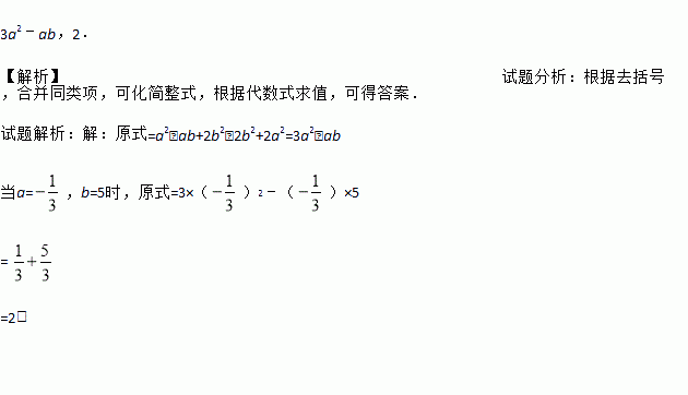 先化简,再求值:(a2﹣ab+2b2)﹣2(b2﹣a2),其中a=,b=5.