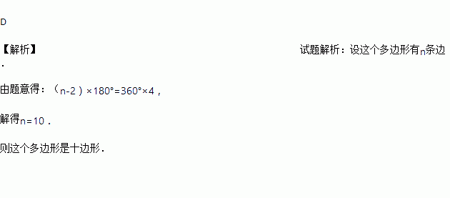 一个多边形的内角和是它的外角和的4倍,这个多边形是( )边形.