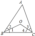 解答 解:∵BO、CO分别平分∠ABC和∠ACB,![]()