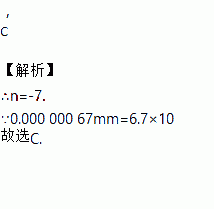某种细菌直径约为0.00000067mm,若将0.00000067mm用科学记数法表示为mm(n为负整数),则n的值为( ).