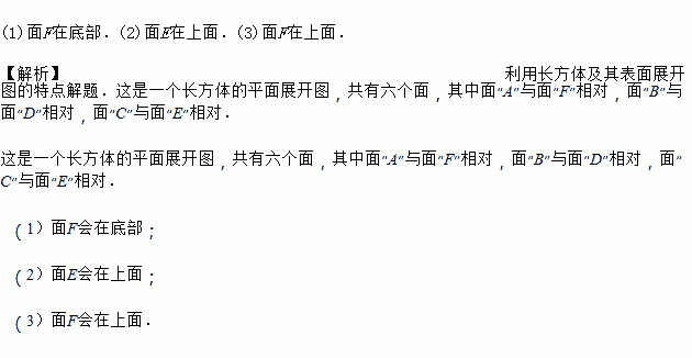 (3)如果从左面看是面C,面D在后面,那么哪一面在上面?