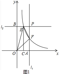 7£®ÔÚÆ½ÃæÖ±½Ç×ø±êϵxOyÖУ¬Ö±Ïßl1¹ýµãA£¨1£¬0£©ÇÒÓëyÖáÆ½ÐУ¬Ö±Ïßl2¹ýµãB£¨0£¬2£©ÇÒÓëxÖáÆ½ÐУ¬Ö±Ïßl1Óël1ÏཻÓÚP£®µãEΪֱÏßl1ÉÏÒ»µã£¬·´±ÈÀýº¯Êýy=$\frac{k}{x}$£¨k£¾0£©µÄͼÏó¹ýµãEÇÒÓëÖ±Ïßl1ÏཻÓÚµãF£®£¨1£©ÈôµãEÓëµãPÖØºÏ£¬ÇókµÄÖµ£»