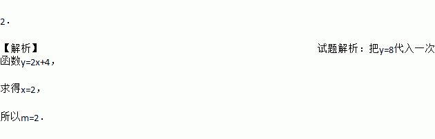 已知一次函数y=2x+4的图象经过点(m,8),则m=________.