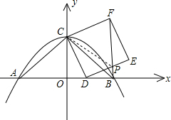 线段OB上一动点,以CD为一边向右侧作正方形CDEF,连接BF,交DE于点P.