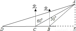 【答案】分析:作AE⊥BD于点E,根据条件可以得到∠ACB=∠CAB=30度,因而AB=BC=36海里,在直角△ADE中根据勾股定理就可以求解.