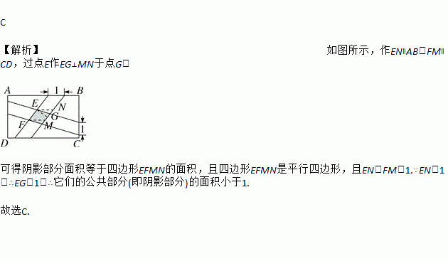 如图,在矩形ABCD中有两个一条边长为1的平行四边形.则它们的公共部分(即阴影部分)的面积是( )