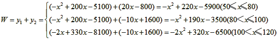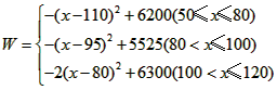 当50≤x≤80时,W随x增大而增大,所以x=80时,